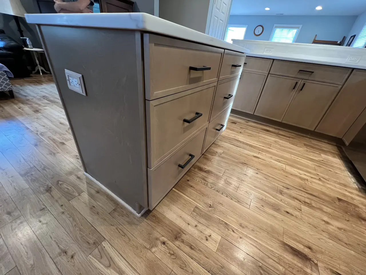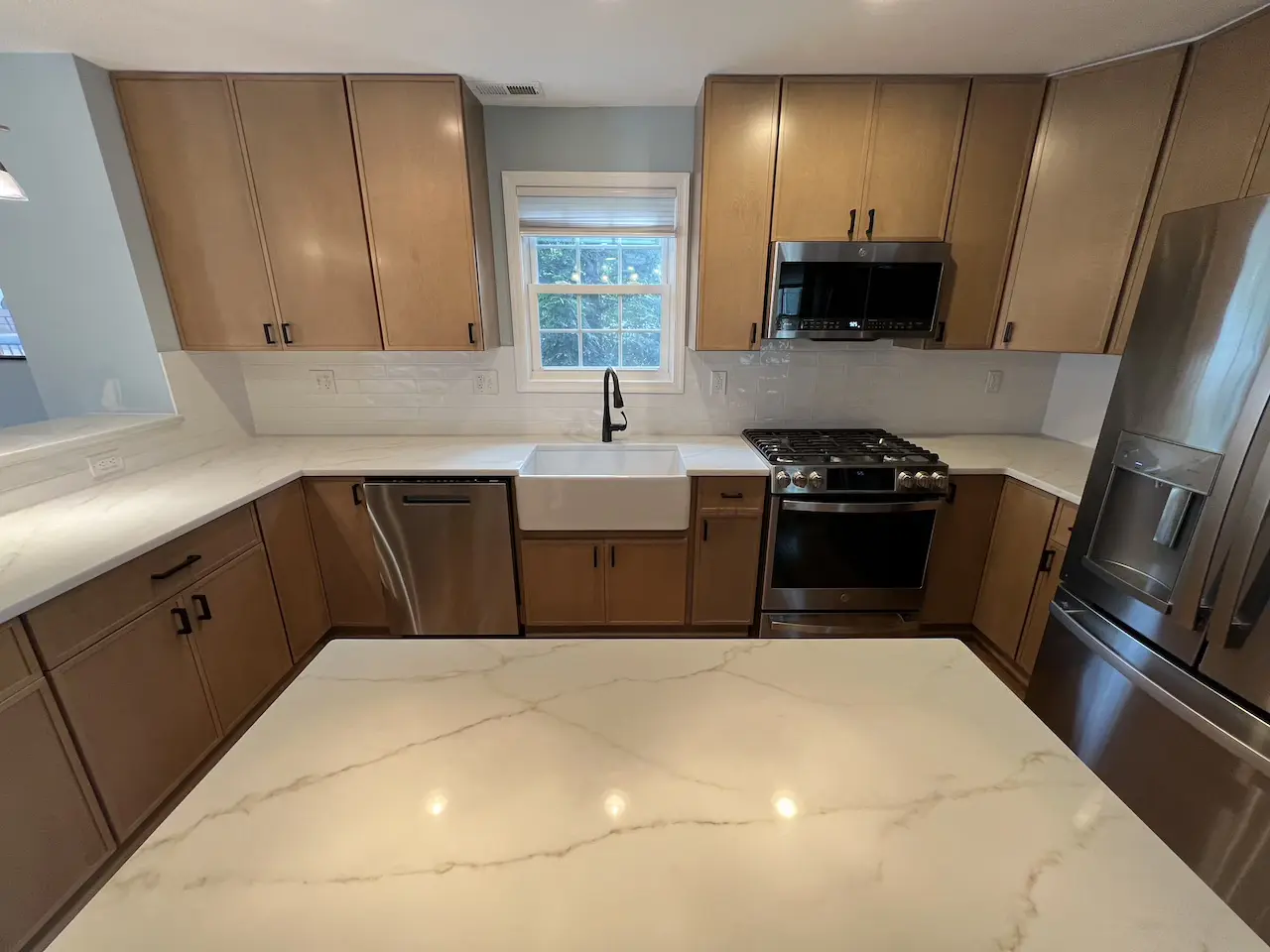 Our client undertook a significant transformation of their kitchen, moving away from dark brown tones and opting for a sophisticated light-colored countertop. This choice has brought a fresh and vibrant new look to the space . The newly installed cabinets, with their sleek design and impeccable craftsmanship, have completely redefined the kitchen. These cabinets not only enhance the kitchen’s visual appeal but also offer superior functionality with their smartly designed storage solutions. The light-colored countertop, made from high-quality materials, stands out with its elegance and durability, adding a touch of luxury while creating an impression of openness and brightness. Together, these updates have turned the kitchen into a modern, stylish, and highly functional area, providing the homeowners with both aesthetic pleasure and practical benefits in their daily lives.